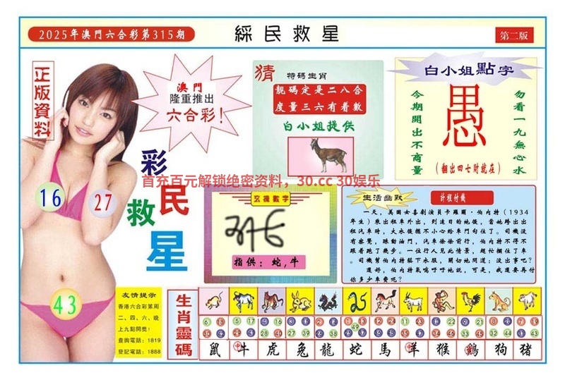 317期:密门仙机/心水特码信/黄大仙天书/波色生肖诗/生肖歇后语